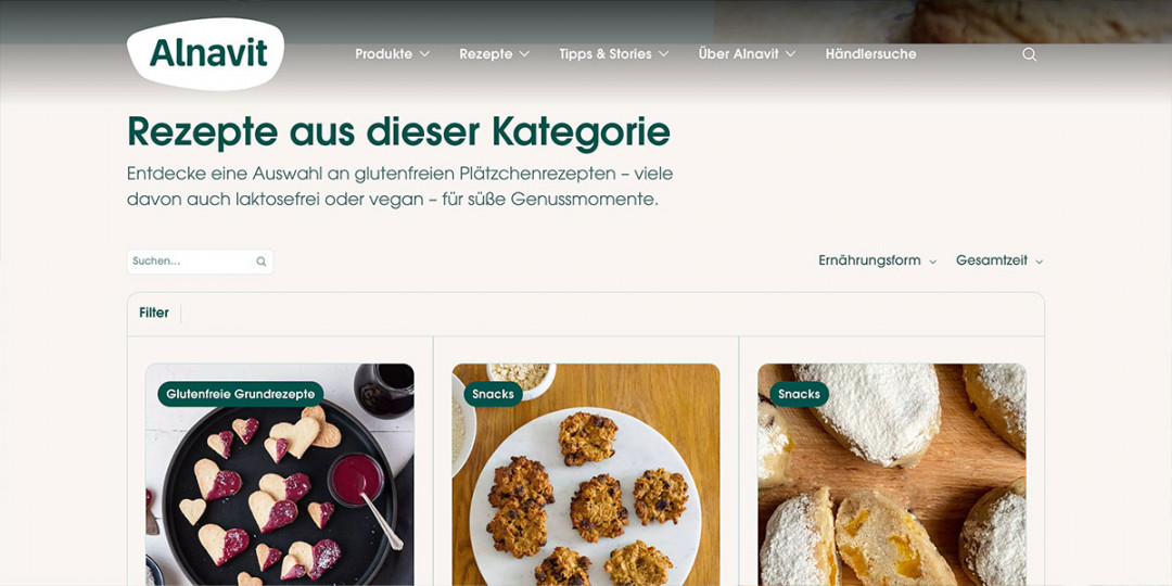 Mit der neuen Corporate Website ist ein zukunftsfähiger Auftritt gelungen, der Markenbindung und Nutzererlebnis gleichermaßen stärkt. Eine klare Struktur, smarte Tools und interaktive Features machen die Marke Alnavit digital erlebbar und führen Nutzer:innen intuitiv zu Produkten und Rezepten. Gleichzeitig sorgt das modulare, API-basierte Backend für effiziente Prozesse und Skalierbarkeit.